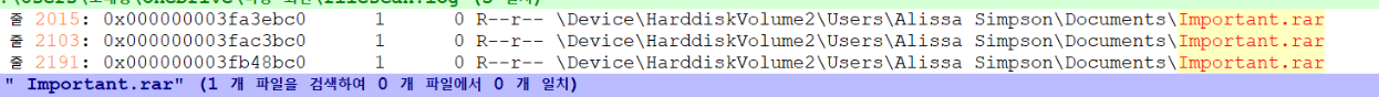 cmdline을 통해 WinRAR.exe 프로세스에서 현재 실행되고 있는것은 Important.rar라는 것을 알 수 있었다.