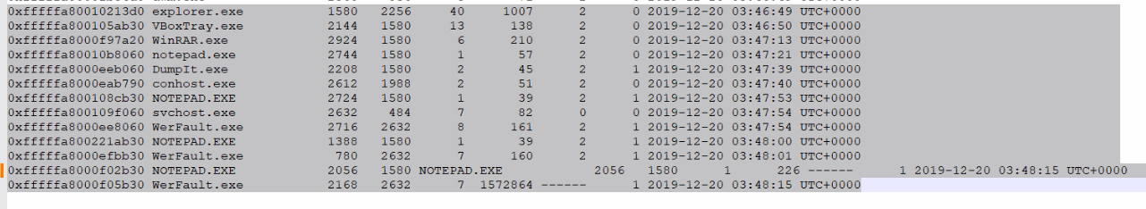 이제 마지막 flag만 남았다. 뭔가 계속 살펴보다가 pslist에 notepad.exe가 계속 걸렸다.