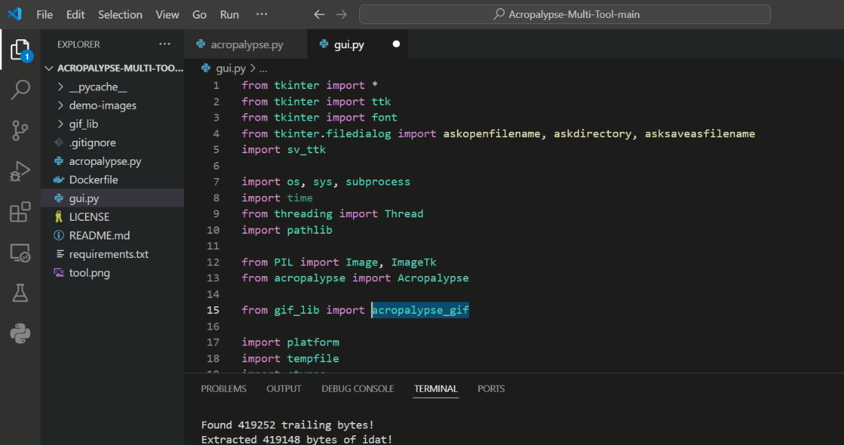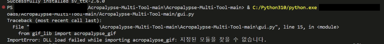 해당 tool을 다운 받아 실행을 시키니 아래와 같은 오류가 발생해 acropalypse_gif을 *로 바꾸고 실행 시켜줬다.