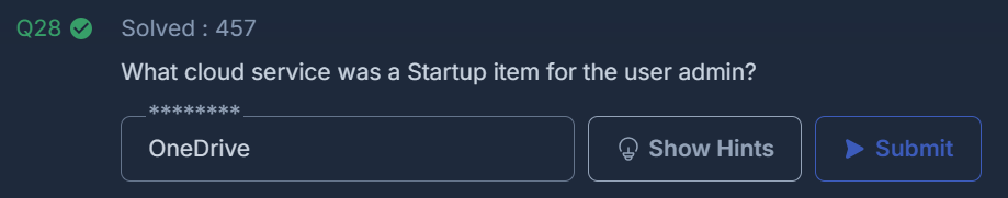 What cloud service was a Startup item for the user admin?