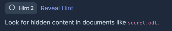 tim.apple user에 Document를 확인해보면 secret.odt 파일이 있는것을 알 수 있다.