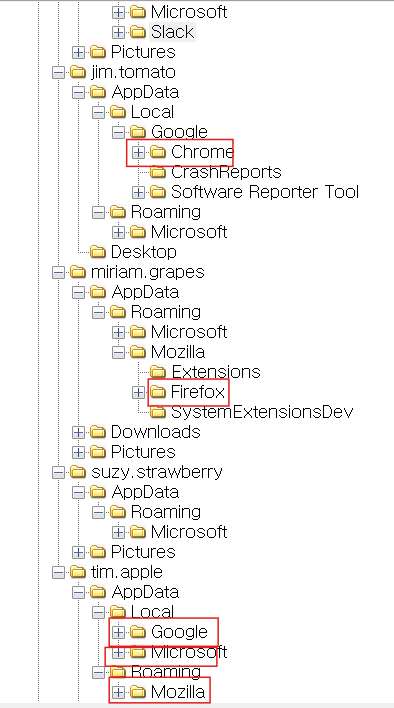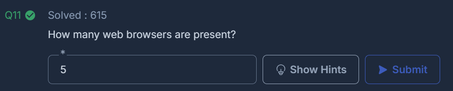 보통 각 user의 appdate local 부분에 웹브라우저를 볼 수 있어 계산을 했고 추가적으로 roaming 부분에 mozilla 즉 firefox 웹 브라우저도 있어 계산을 해보니 5개가 있었다. 하지만 해당 문제가 답이라는 확신은 가지지 못했다.