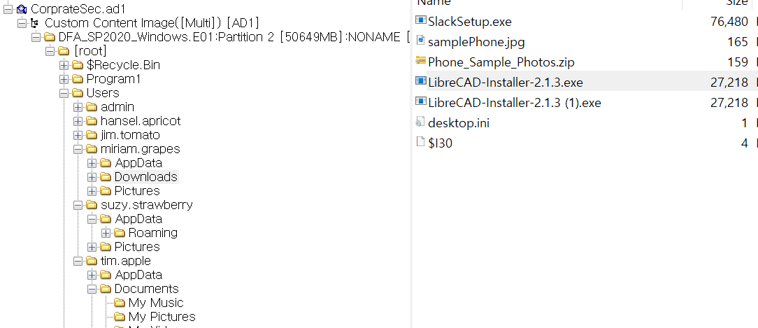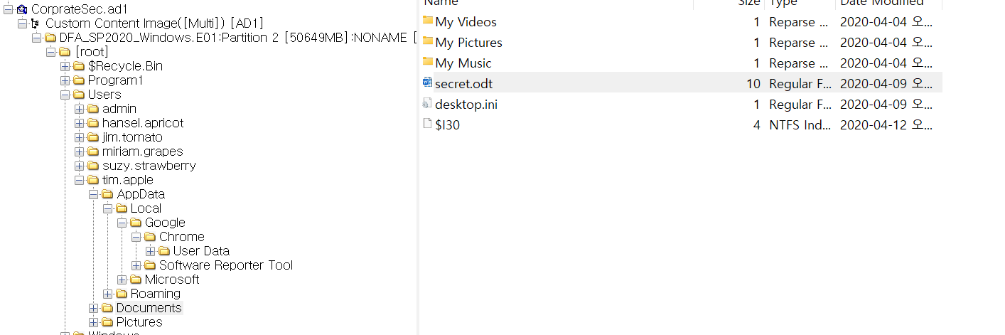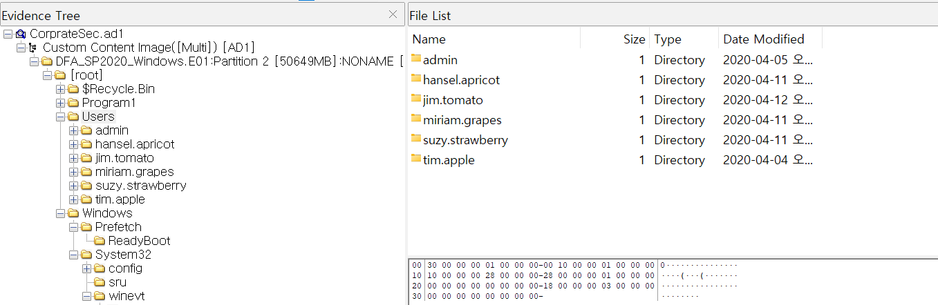 FTK Imager에서 Users를 확인하면 사용자를 확인 할 수 있다.