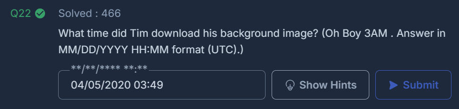 What time did Tim download his background image? (Oh Boy 3AM . Answer in MM/DD/YYYY HH:MM format (UTC).)