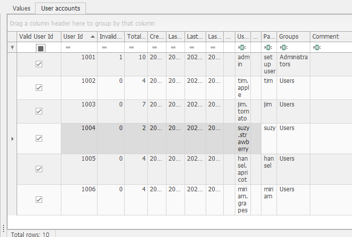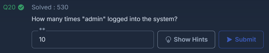 How many times "admin" logged into the system?