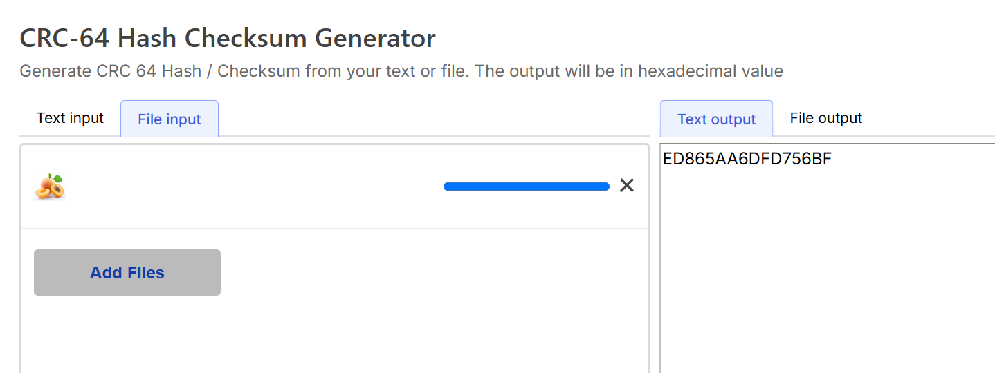 CRC-64 hash cheksum이라 검색해보니 Toolkit Bay 사이트를 확인할 수 있었다.