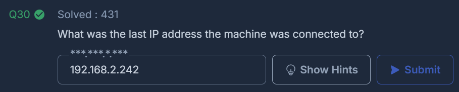 What was the last IP address the machine was connected to?