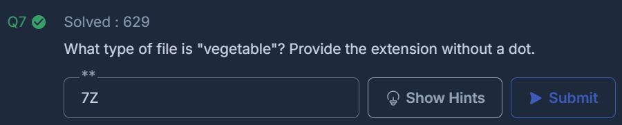 What type of file is "vegetable"? Provide the extension without a dot.