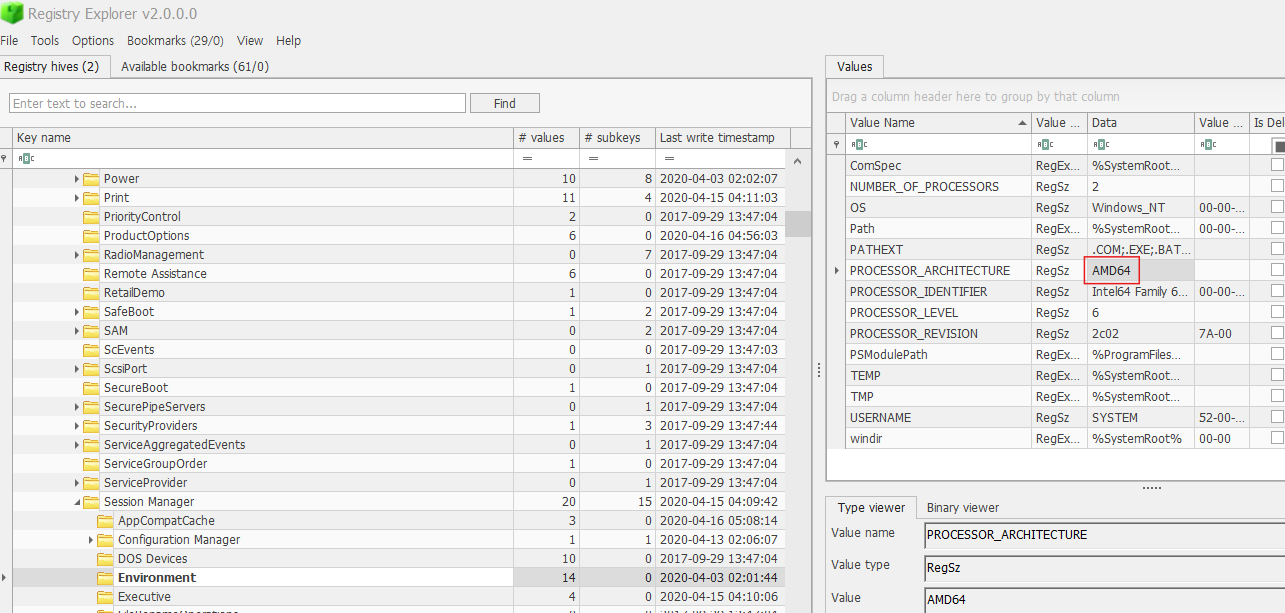 ROOT-ControlSet001-Control-Session Manager-Environment 경로로 이동해주면 확인 할 수 있다.