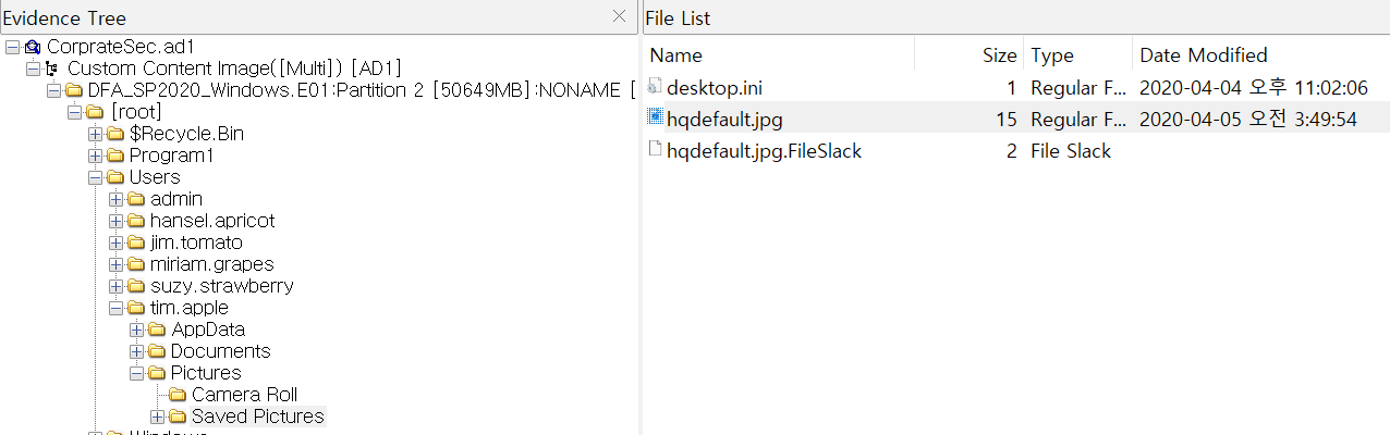 해당 문제는 FTK에서 tim.apple의 hqdefault.jpg의 시간을 보면 확인 할 수 있다.
