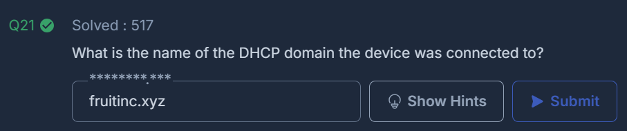 What is the name of the DHCP domain the device was connected to?