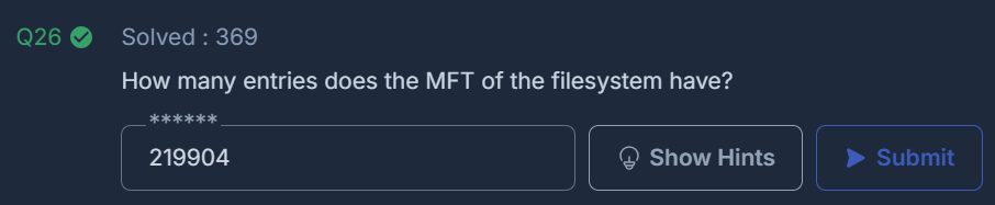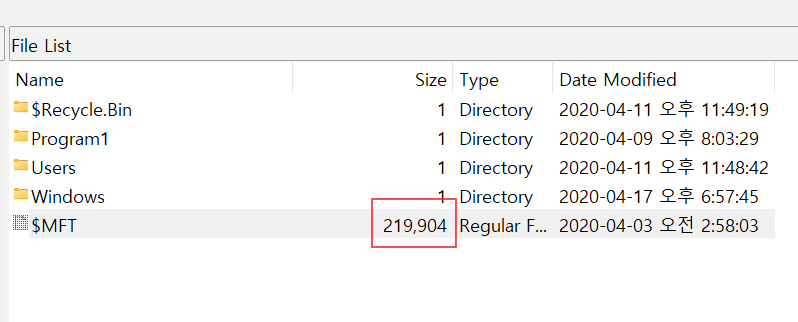 해당 질문은 FTK Imager에서 $MFT의 크기를 확인하면 답을 알 수 있다.