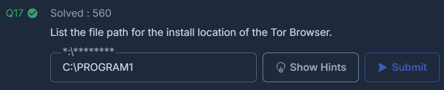 List the file path for the install location of the Tor Browser.