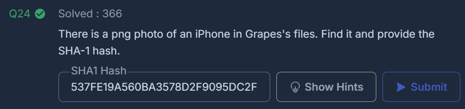 There is a png photo of an iPhone in Grapes's files. Find it and provide the SHA-1 hash.