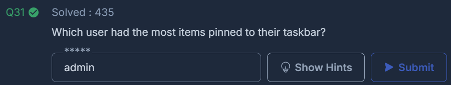 Which user had the most items pinned to their taskbar?