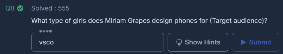 What type of girls does Miriam Grapes design phones for (Target audience)?