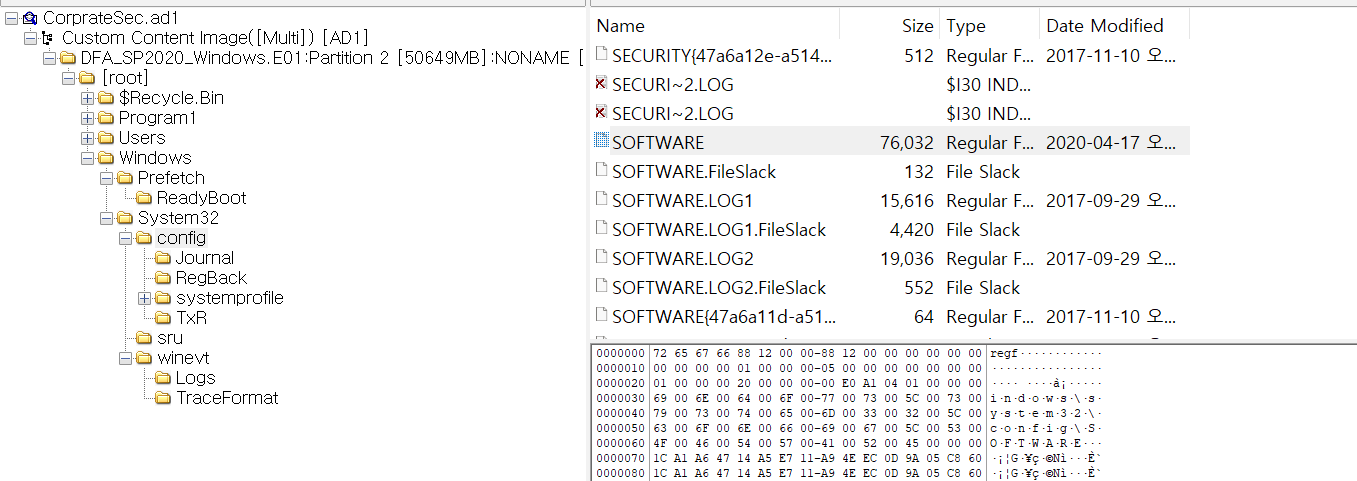 경로의 레지스트리에서 확인할 수 있다. REGA 도구를 이용해 확인했다.