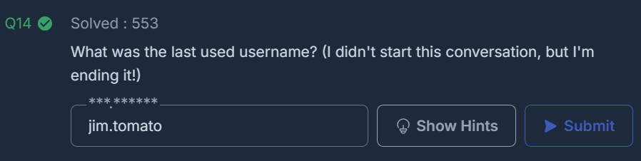 What was the last used username? (I didn't start this conversation, but I'm ending it!)