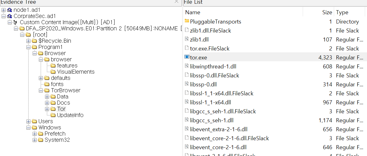 TOR.EXE는 훓어보다가 아래와 같은 경로에 있다는 것을 확인했다.