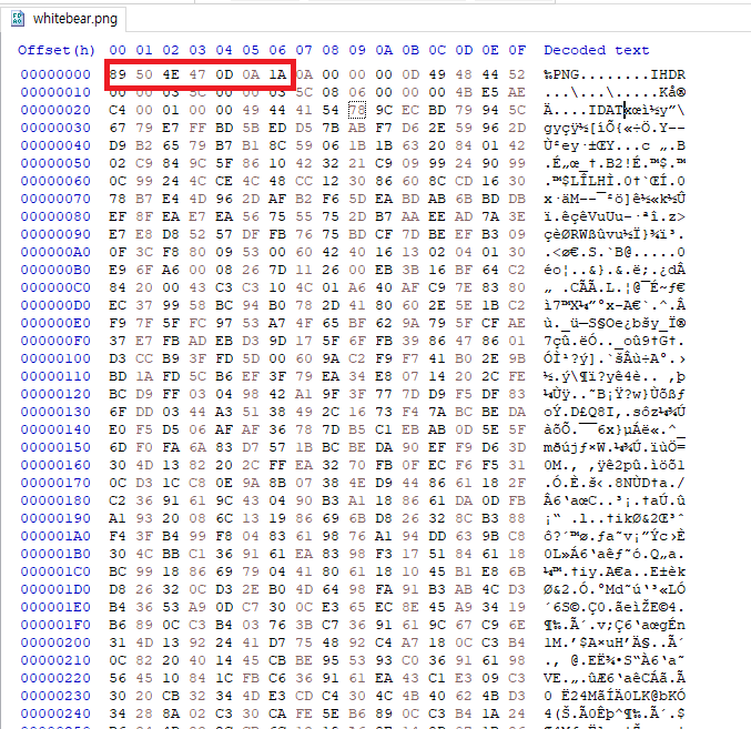 시그니처 값: 89 50 4E 47 0D 0A 1A 0A