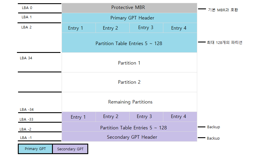 - Backup GPT Header & Partition Table (디스크 마지막 섹터)