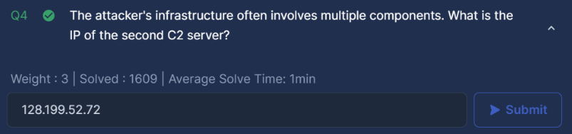 The attacker's infrastructure often involves multiple components. What is the IP of the second C2 server?