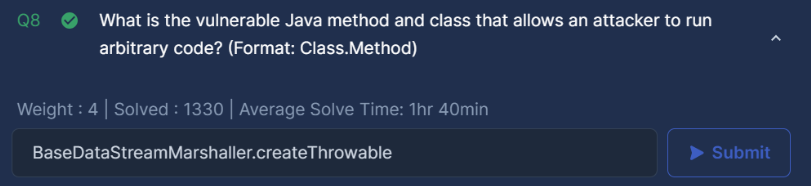 What is the vulnerable Java method and class that allows an attacker to run arbitrary code? (Format: Class.Method)
