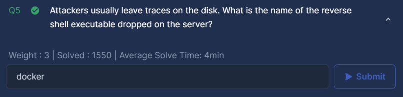Attackers usually leave traces on the disk. What is the name of the reverse shell executable dropped on the server?