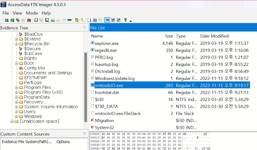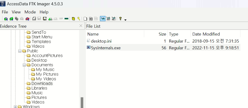 해당 문제 이미지 파일을 AXIOM으로 import 하는 동안 FTK Imager로 찾을 수 있었다.
