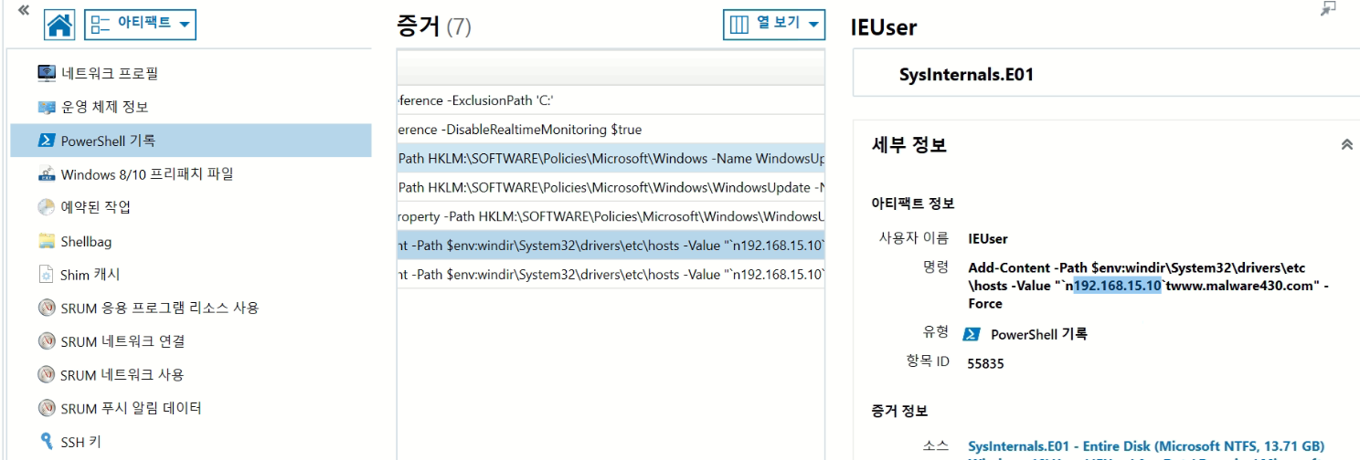 파워쉘 로그를 보니 알 수 있었다. 5번도 같이 알 수 있었다.