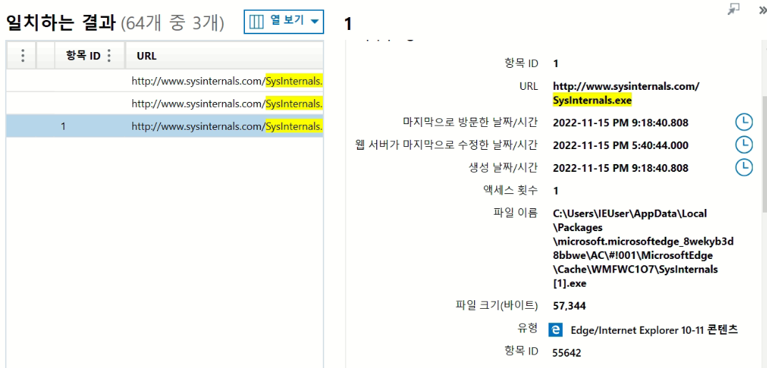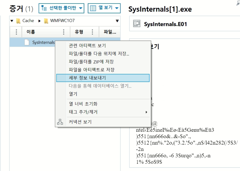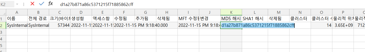 axiom을 통해 Sysintersals[1].exe가 악성파일이라는 것을 찾은 뒤 해당 파일의 정보를 .csv로 내보낸다.