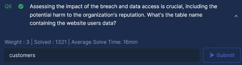 Assessing the impact of the breach and data access is crucial, including the potential harm to the organization's reputation. What's the table name containing the website users data?