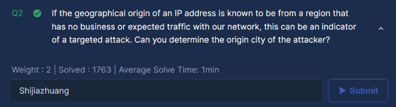If the geographical origin of an IP address is known to be from a region that has no business or expected traffic with our network, this can be an indicator of a targeted attack. Can you determine the origin city of the attacker?