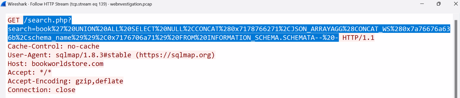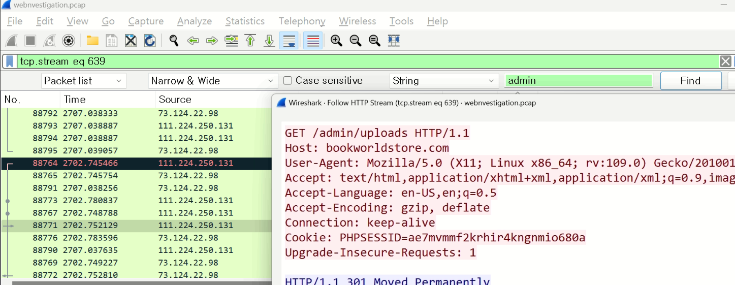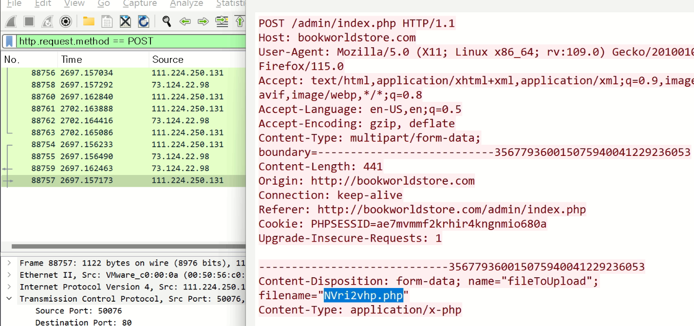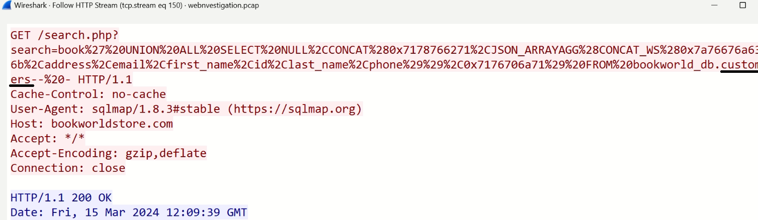 As the lead analyst on this case, you are required to analyze the network traffic to uncover the nature of the suspicious activity. Your objectives include identifying the attack vector, assessing the scope of any potential data breach, and determining if the attacker gained further access to BookWorld's internal systems.