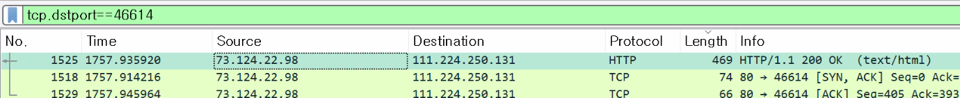 그럼 해당 port 46614를 wireshark에 검색을 하여 sql query를 찾아보자.