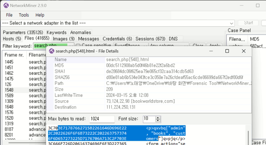 wireshark로는 도저히 찾을 수가 없어서 networkminer를 이용했다.