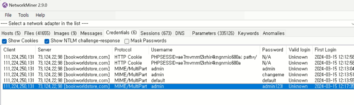 network miner를 보면 credentials 창이 있다. 해당 창을 보면 credentials를 확인 할 수 있다.