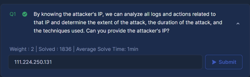 By knowing the attacker's IP, we can analyze all logs and actions related to that IP and determine the extent of the attack, the duration of the attack, and the techniques used. Can you provide the attacker's IP?